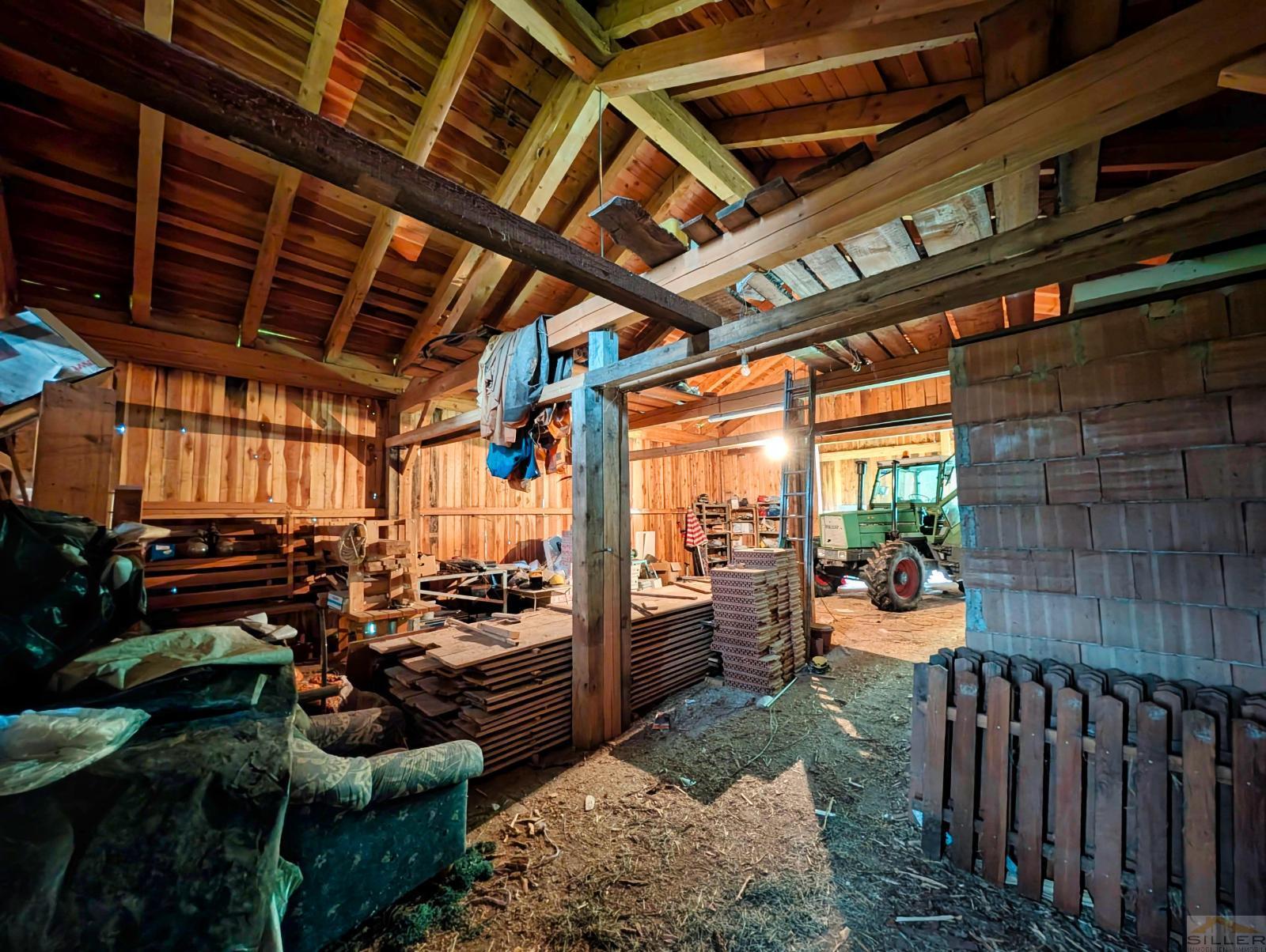 Der Kellerbereich umfasst einen 20 m² Nebenraum mit Garage, separatem Bad sowie Anschlüsse für Technik und Glasfaser. Die Tenne, die über die rückseitige Auffahrt erreicht werden kann, bietet mit imposantem offenen Dachstuhl von 8,50 m Höhe Platz für landwirtschaftliche Maschinen, Hänger, einem Heustock, Werkstatt oder sonstigem Bedarf.