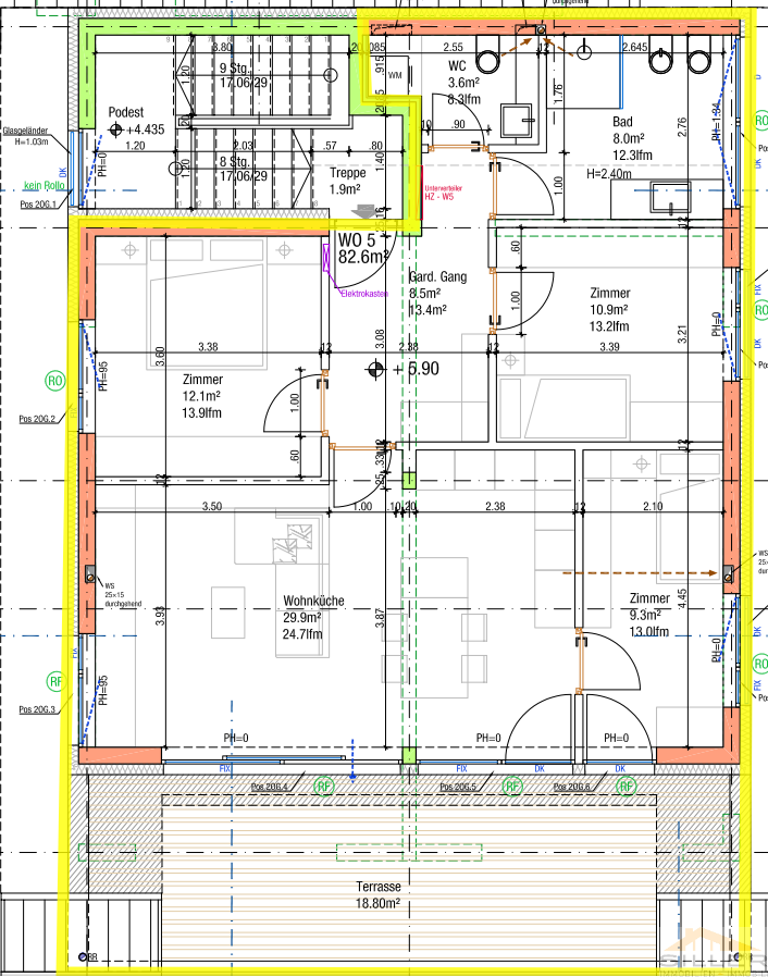 - Ausrichtung Balkon / Terrasse Süd, Ost, West